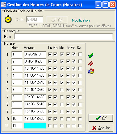 Modification d'un Horaire des Cours.